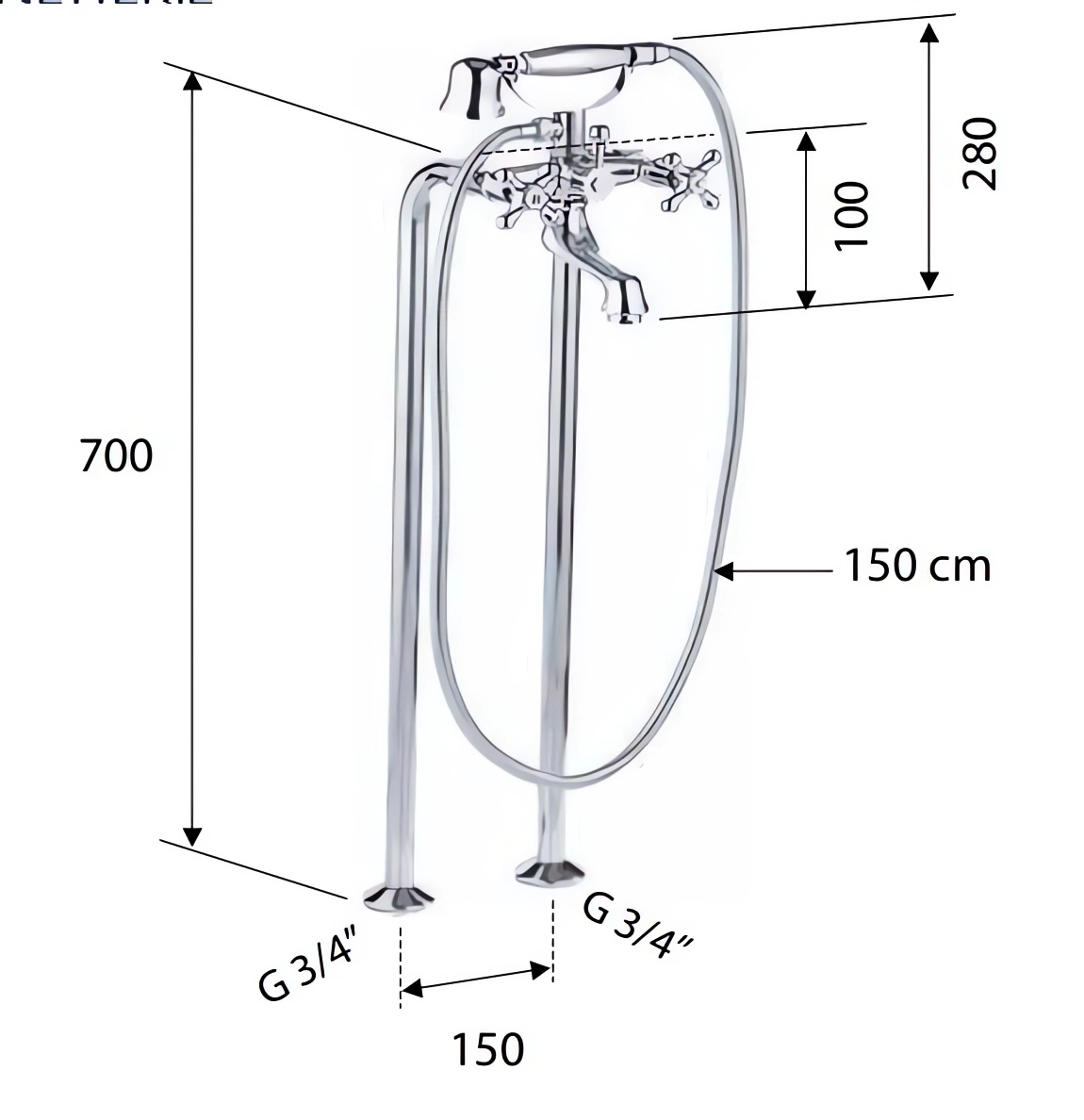 Смеситель напольный для ванны хром