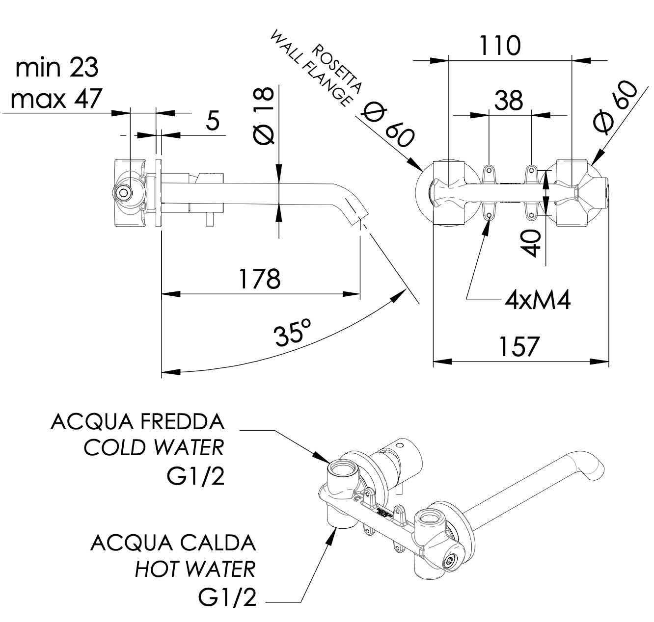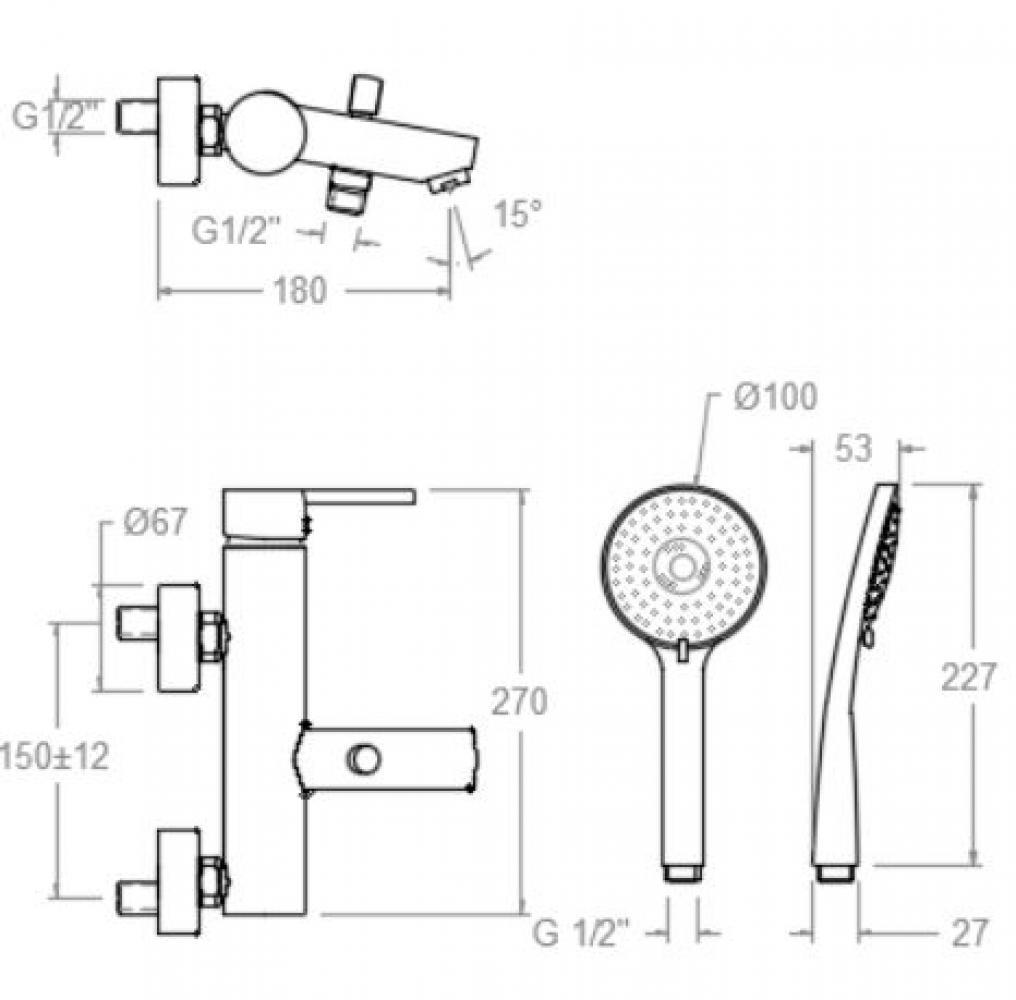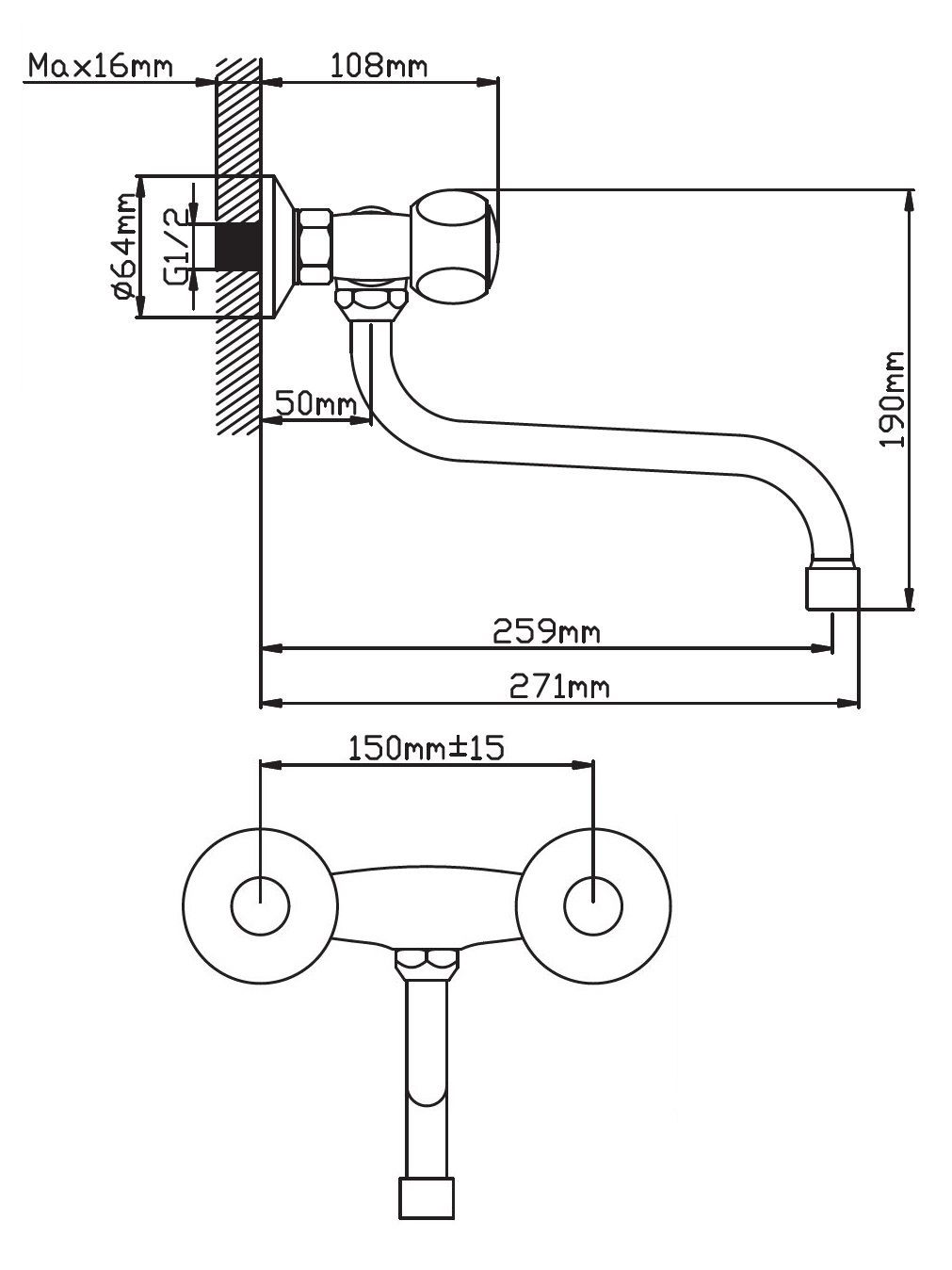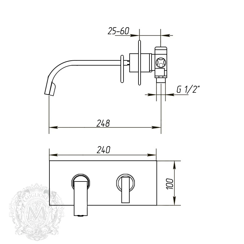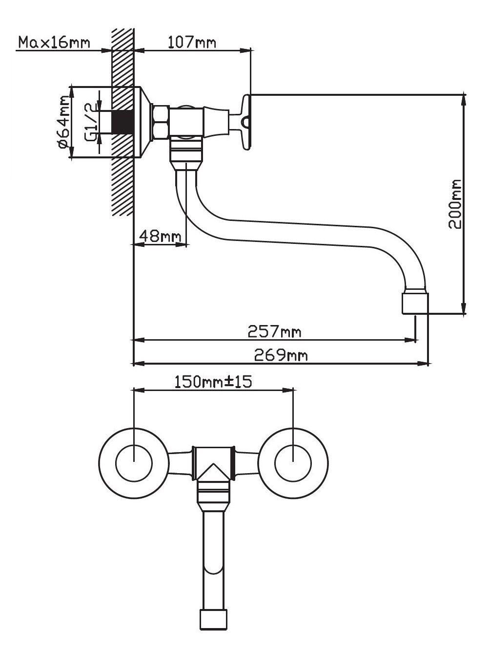 Смеситель настенный размеры