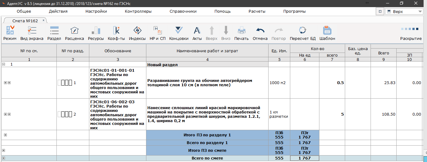Смета дорожной разметки