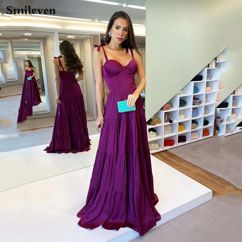 "Smileven Purple `Bow Straps A Line Evening Dress Pleats Sweetheart Prom Dresses Corset Evening Party Gowns 2022" * Buy Now Just For 80$