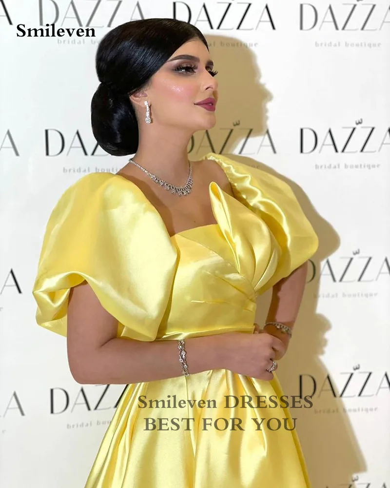 "Smileven Yellow Tea Length Evening Dresses A Line Big Bow Satin Prom Gowns Backless Short Puff Sleeve Evening Party Dresses 2022" * Buy Now Just For 72$
