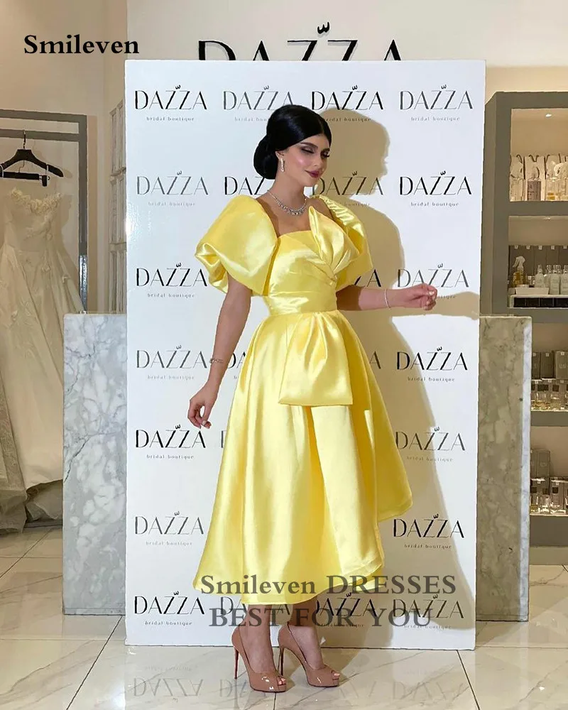 OAzWIKnqLooked for Smileven Yellow Tea Length Evening Dresses A Line Big Bow Satin Prom Gowns Backless Short Puff Sleeve Evening Party Dresses 2022 for a long time, but could not find it? Bring to your attention Smileven Yellow Tea Length Evening Dresses A Line Big Bow Satin Prom Gowns Backless Short Puff Sleeve Evening Party Dresses 2022 with the best price!