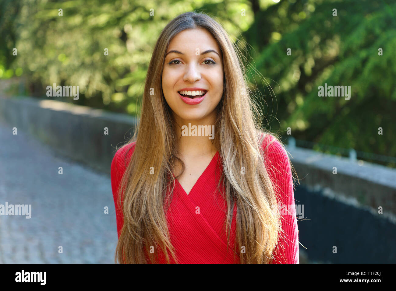 Smiley Curvy Brunette Frau