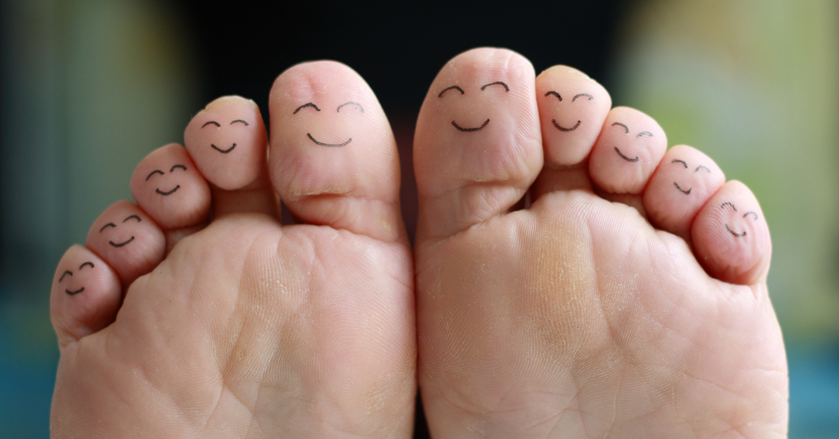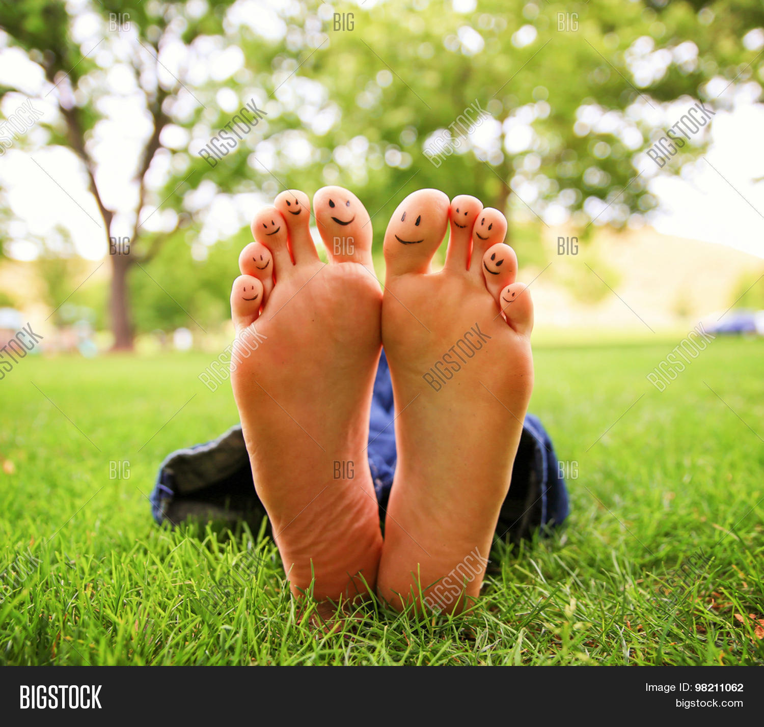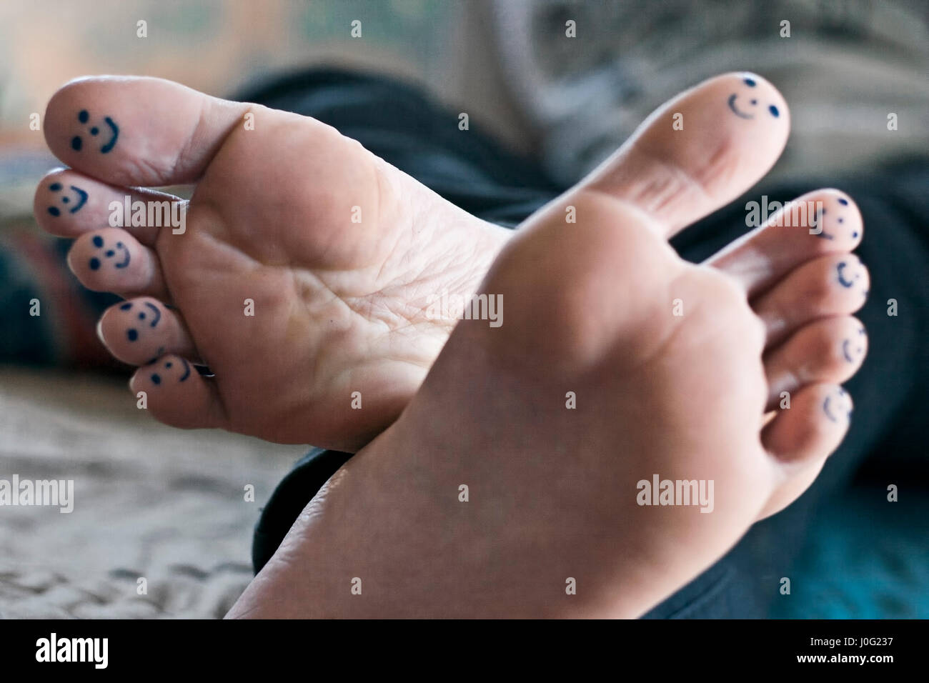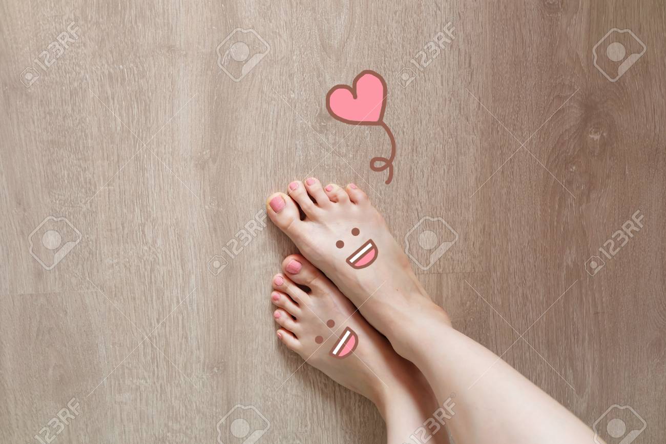 Smiley Face Drawn On Toes . Close Up Female Barefoot On . . .