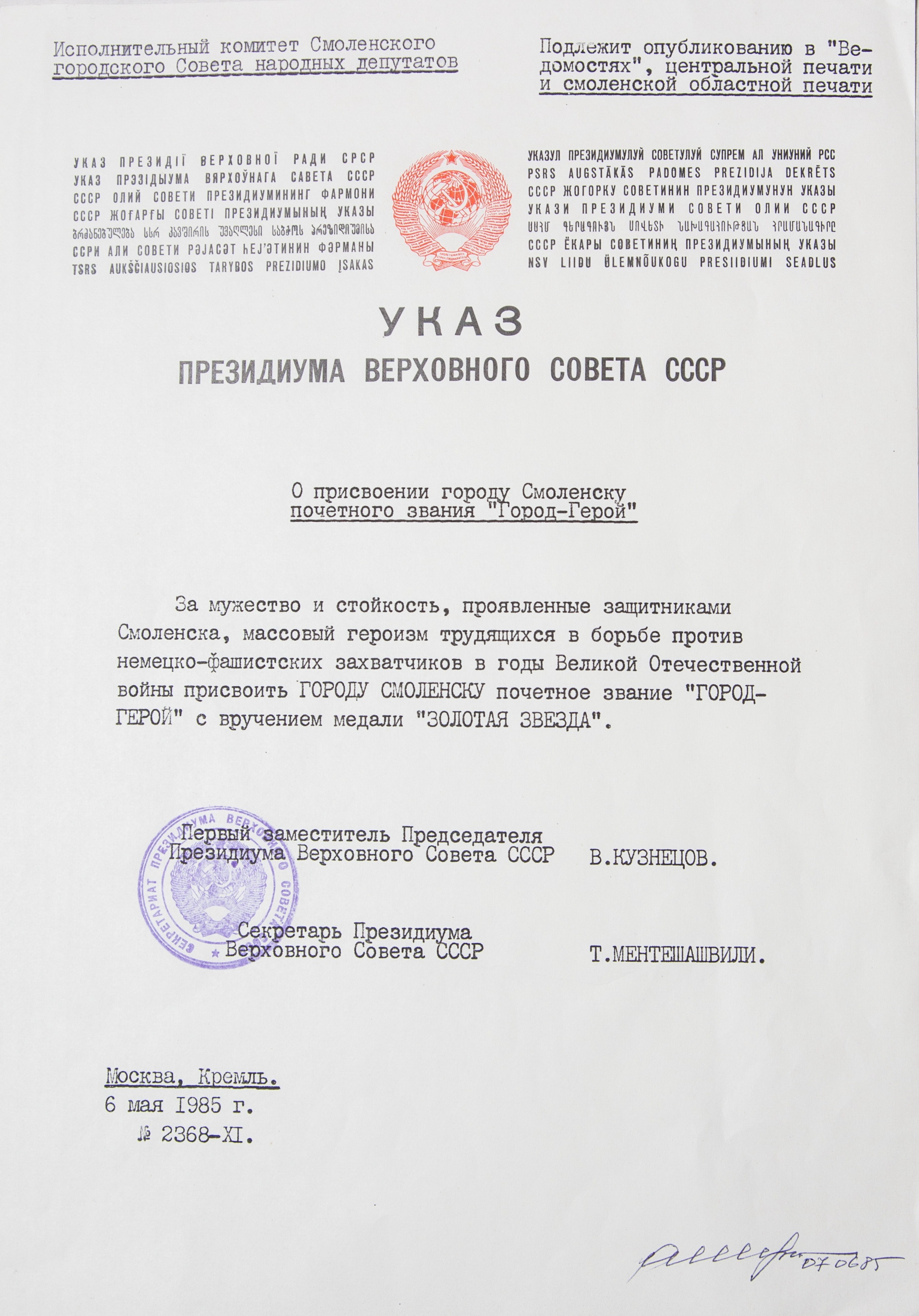 Смоленск звание героя 106 фото