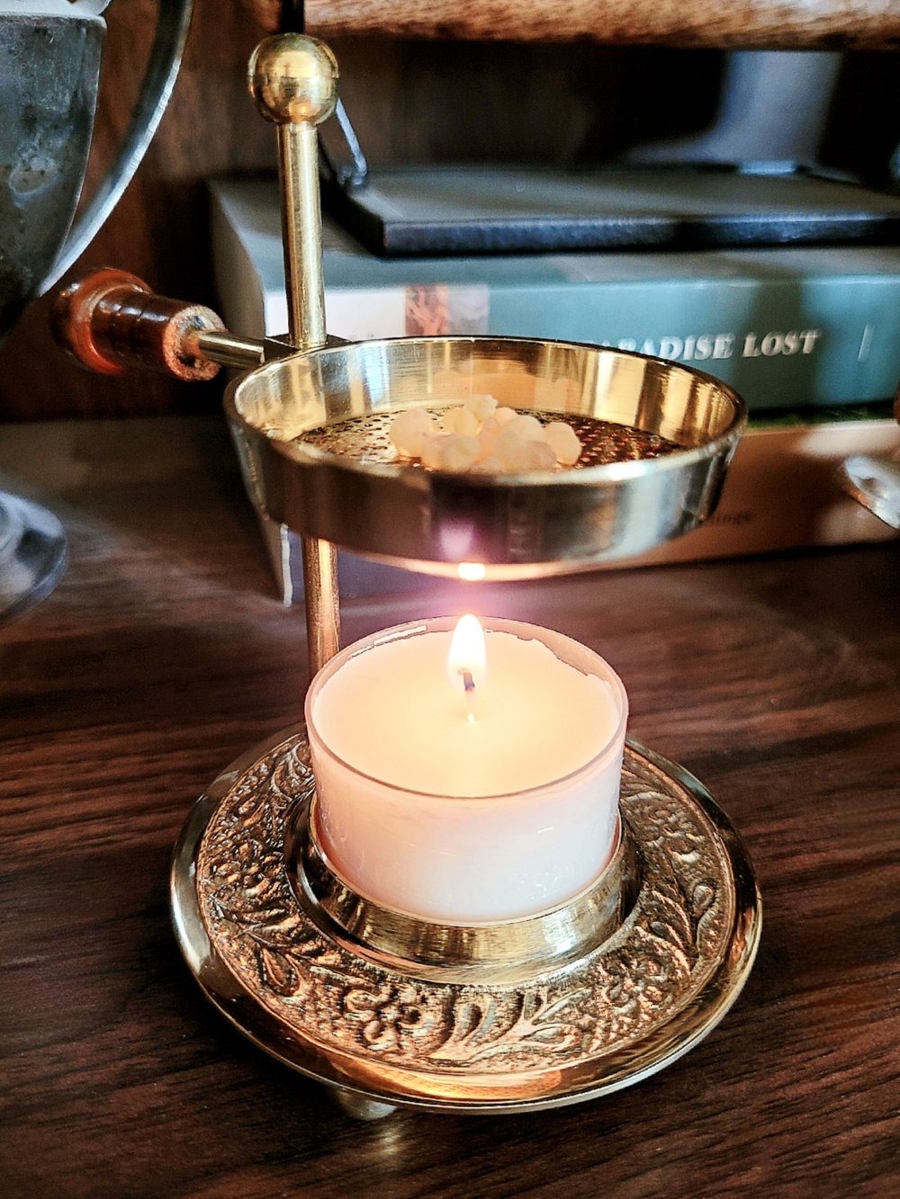 Древесные угли горят при высокой температуре. Ароматические смолы быстро растворяются в облаке дыма, и мы теряем многие ароматические нюансы, которые они нам дарят. Особенно это касается экзотических пород дерева. Температура углей также приводит к сжиганию смолы ладана, мирры и других живиц, которые пахнут обугливанием. Большинство видов ладана и мирры на самом деле представляют собой Олео-камедные смолы. Все они содержат от 20% до 60% водорастворимой камеди, которая не плавится, не имеет собственного аромата и не очень приятно пахнет при горении.