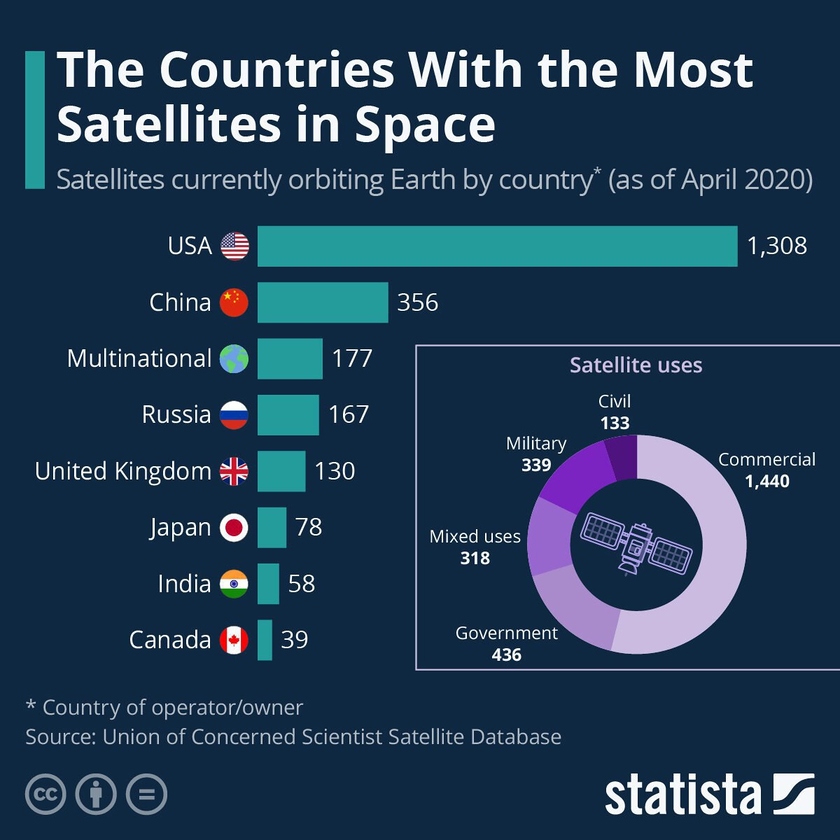 Речь, разумеется, идёт о спутниках, коих было запущено на орбиту земли просто Лишь по состоянию на 2008 год на орбите Земли находилось порядка 13 000 различных спутников .