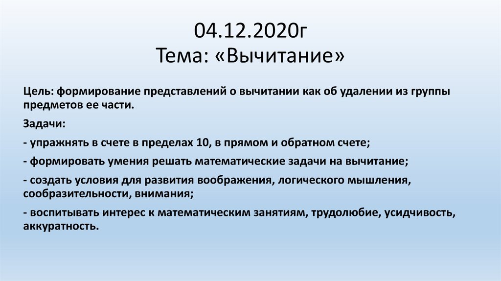 Смысл действия вычитания