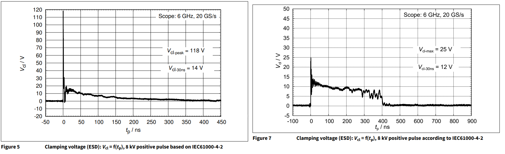 Рисунке 5 показан график для аналогичного Snapback диода, что и выше, но с Vcl = 20V, а Vh = 7V. Оба этих значения тоже номинальные.