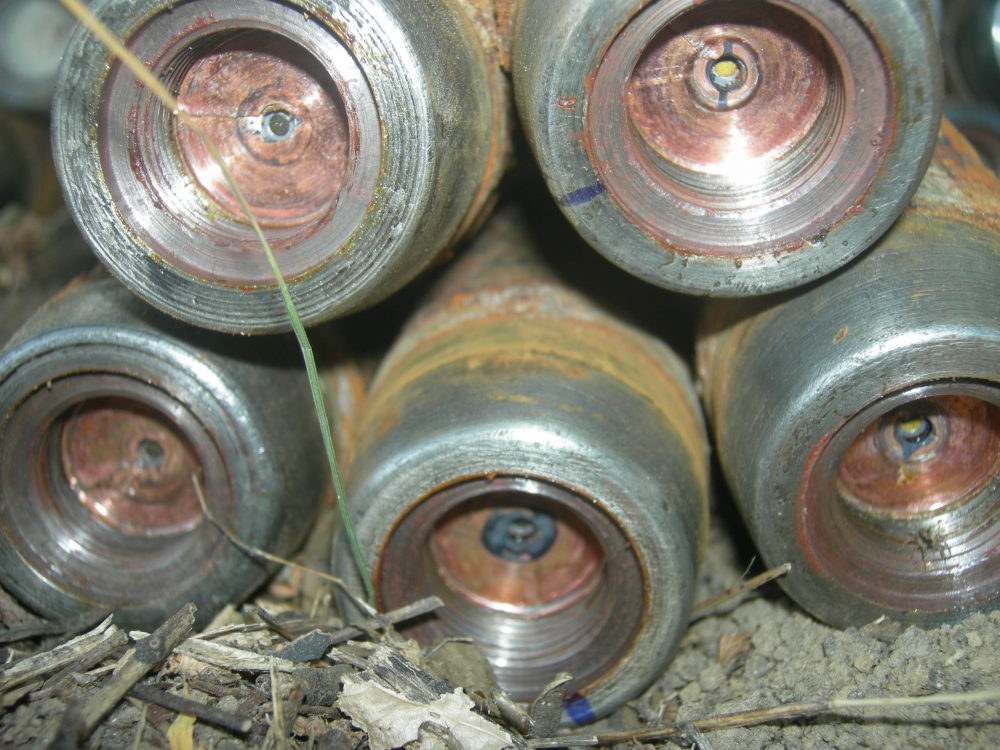 Снаряд, торчащий из земли дном вверх может быть как прошедшим канал ствола и неразорвавшимся, так и установленным в качестве мины . Бронебойно-трассирующие снаряды К 45 мм и 57 мм пушкам (СССР)