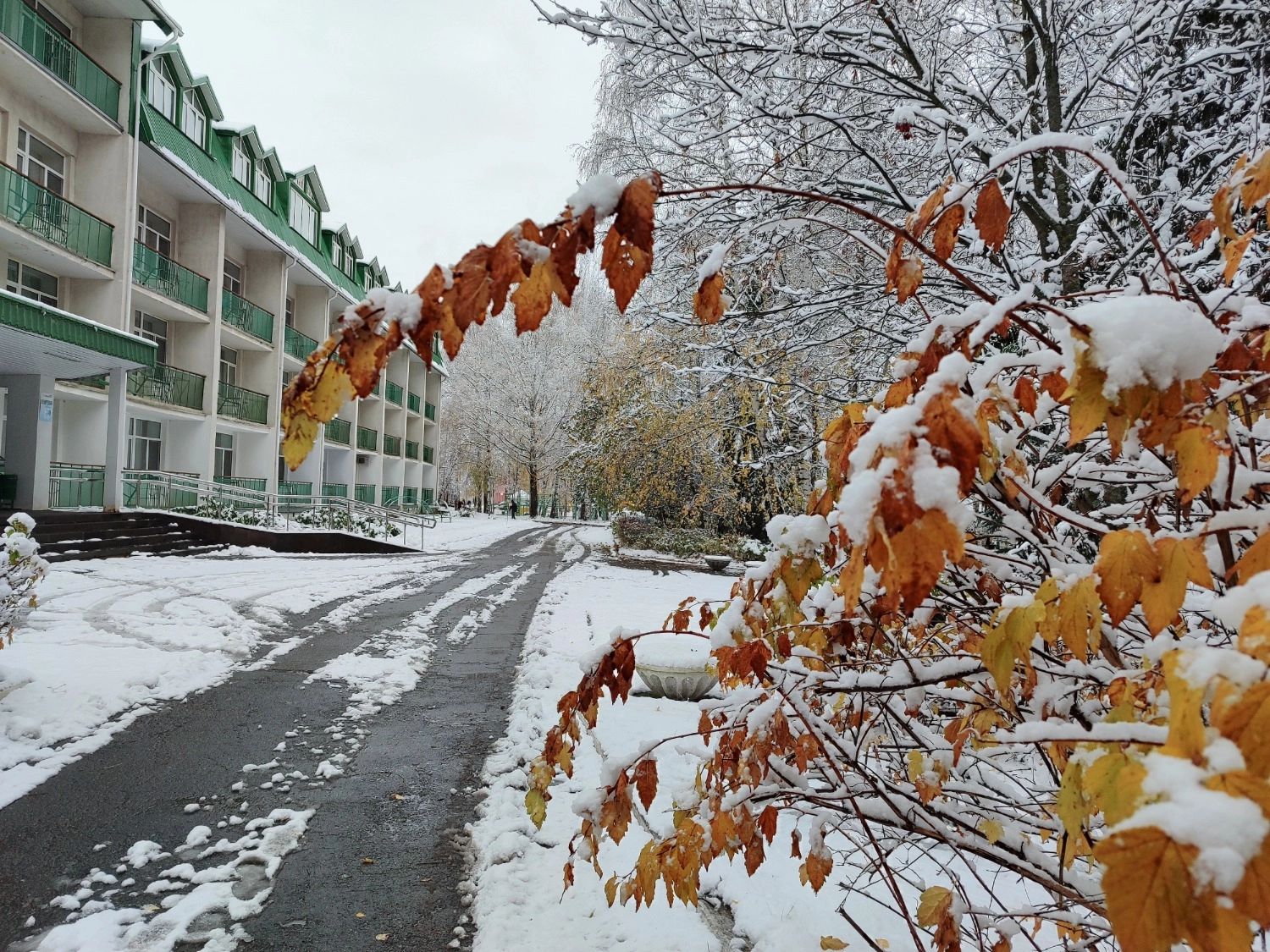 Снег В Осеннем Парке Фото