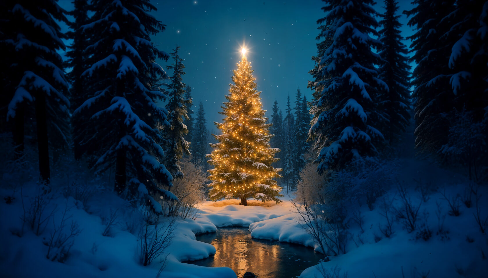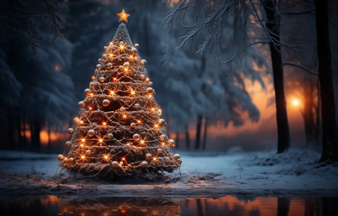 Снег елка ночью 110 фотографий