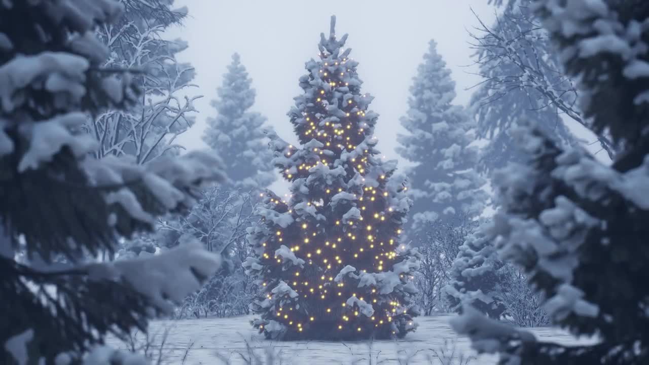 Снег елка ночью