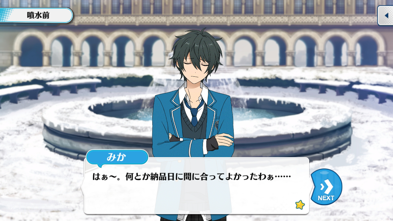 Мика: Спасибо и вам за помощь. ♪ Мы успели закончить костюмы, потому что вы доставляли нам их~
