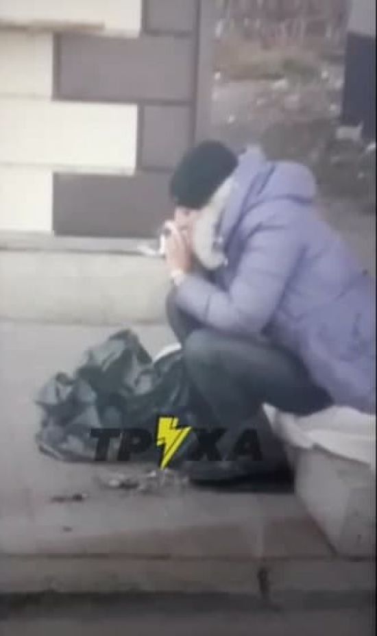 Женщина где-то достала труп голубя и съела его . На железнодорожном вокзале, вероятно, в Полтаве, сняли женщину, которая потребляла сырого голубя в перьях . Горожанка присела на бордюр и принялась наслаждаться мертвой птицей .