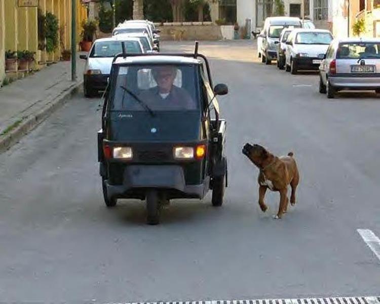 Собака гоняется за машинами