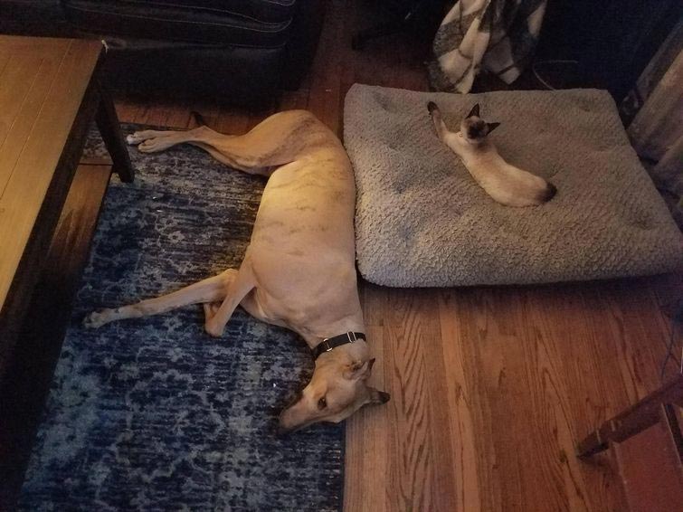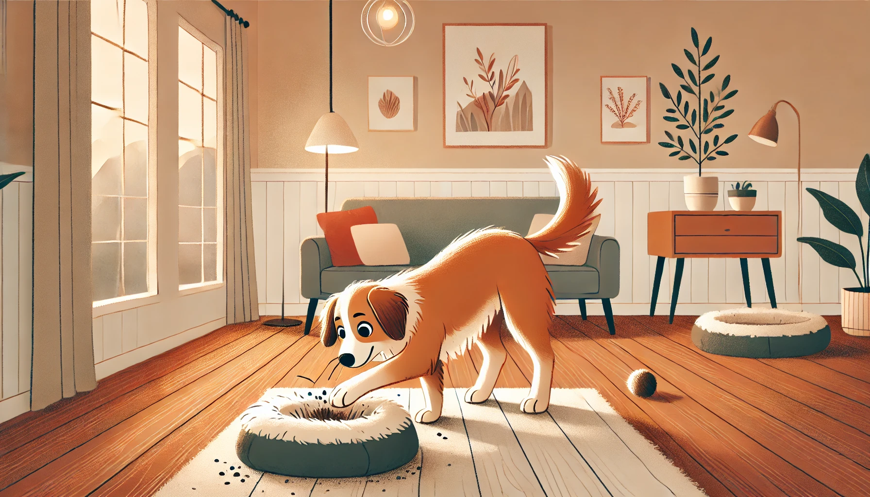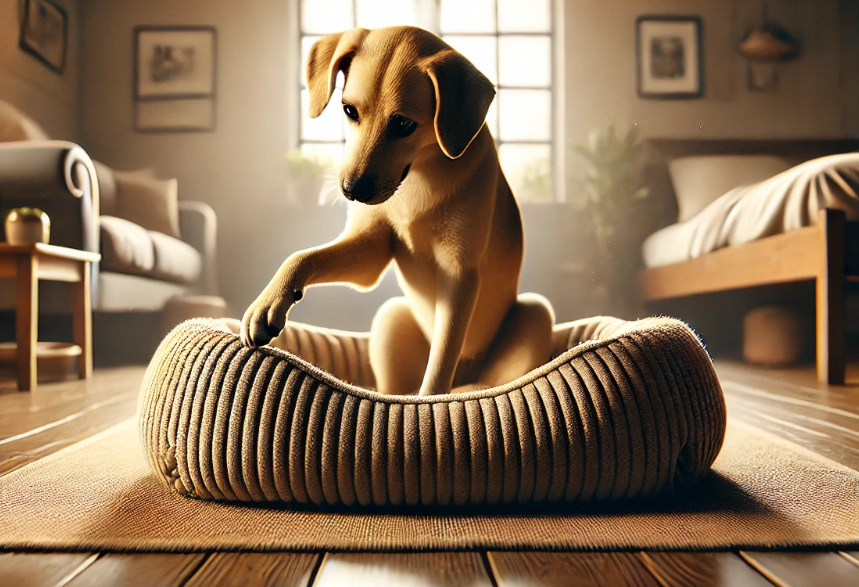 Собака копает в кровати