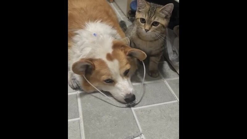 Собака кусает кота