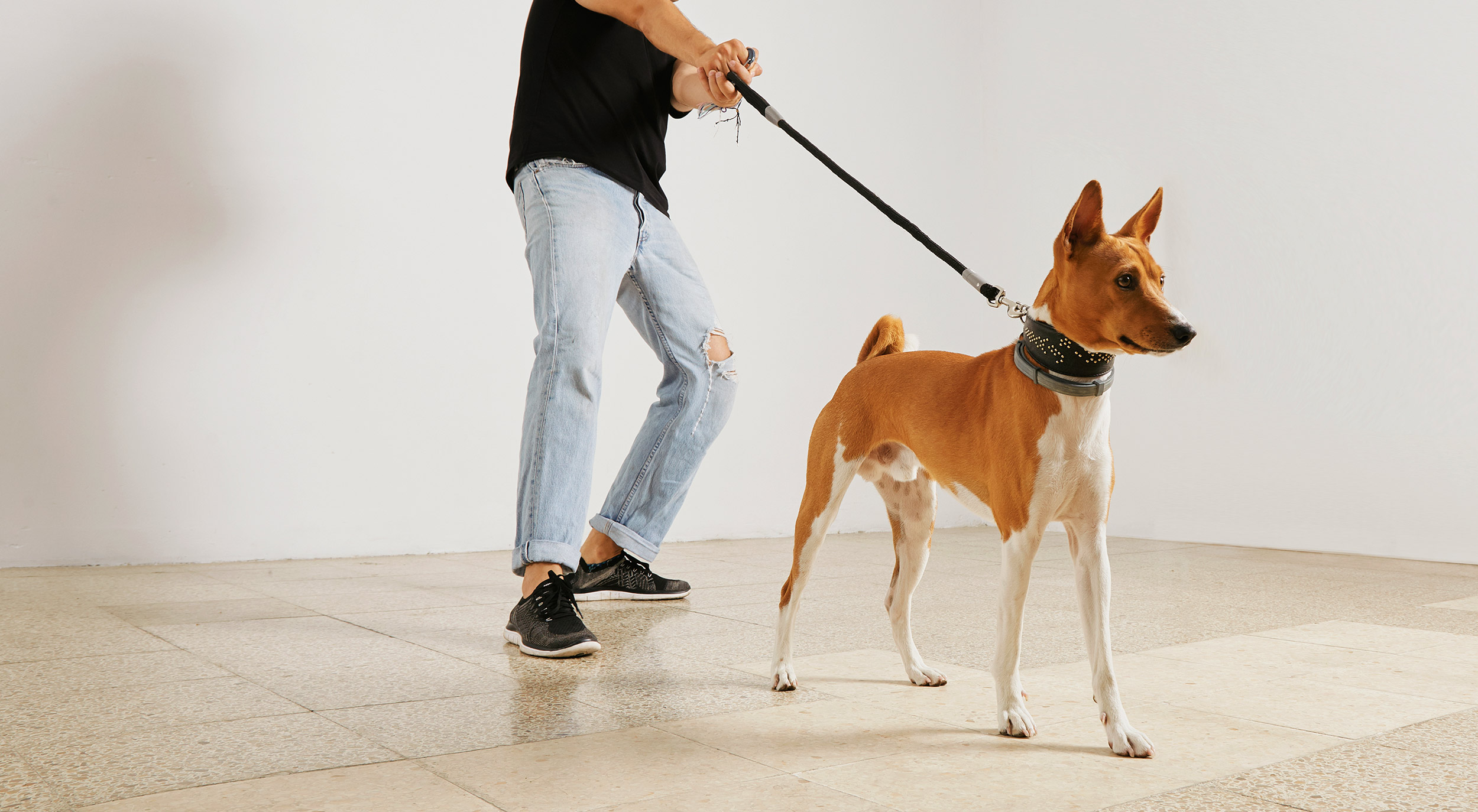 Собака на длинном поводке
