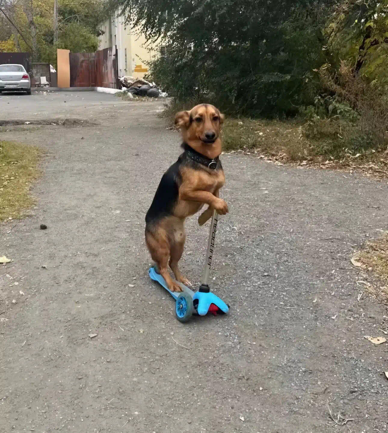 Собака пристроилась к ноге