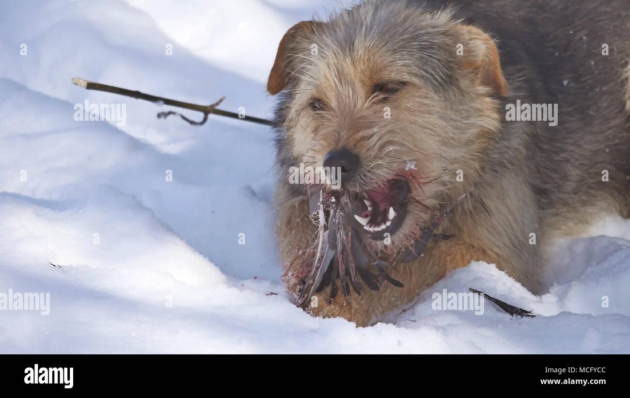 Собака съела птицу
