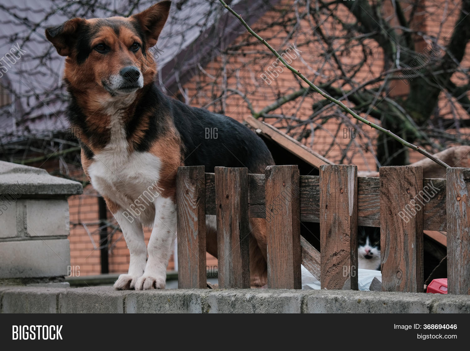 Собака сидит на заборе 114 фото
