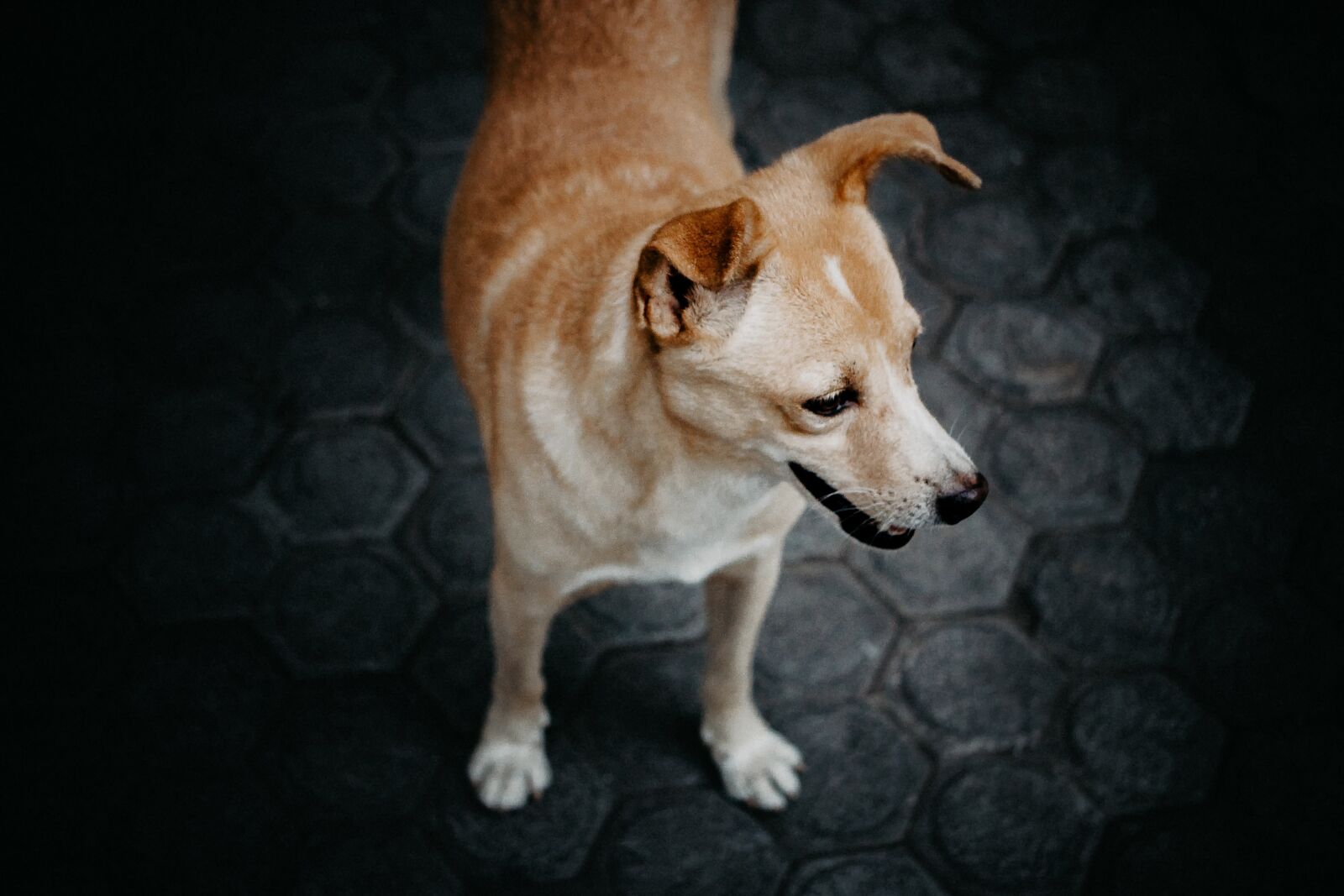 Собака стоит углу