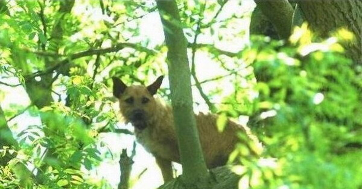 Собака залезла на дерево
