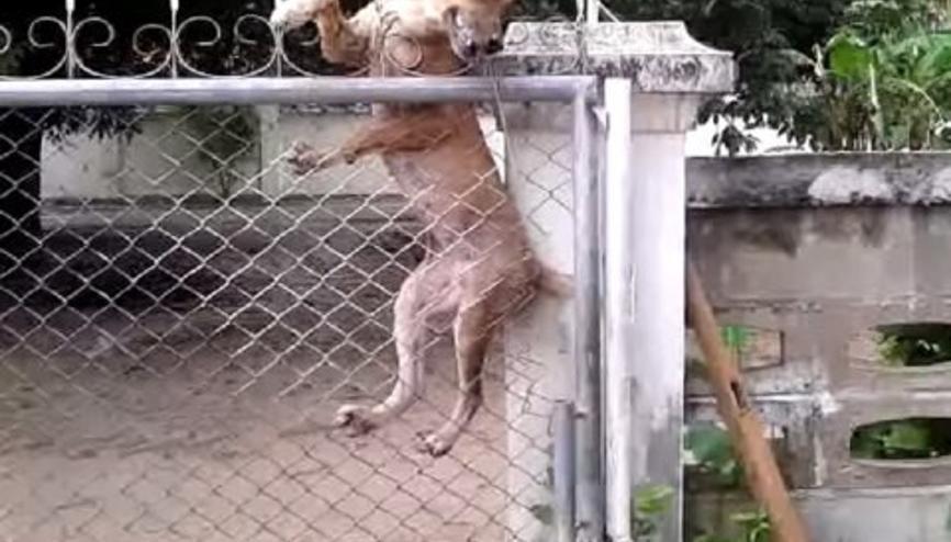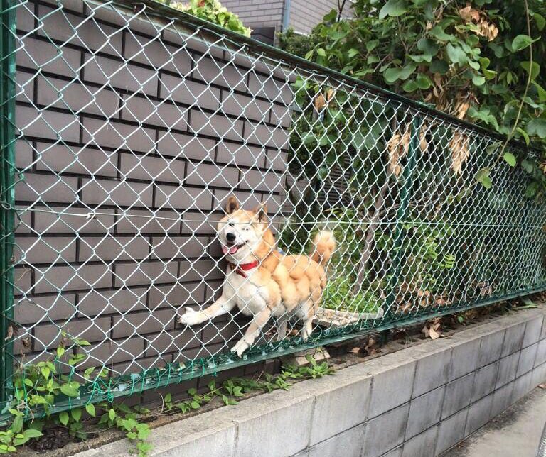 Собаки перепрыгивают через забор