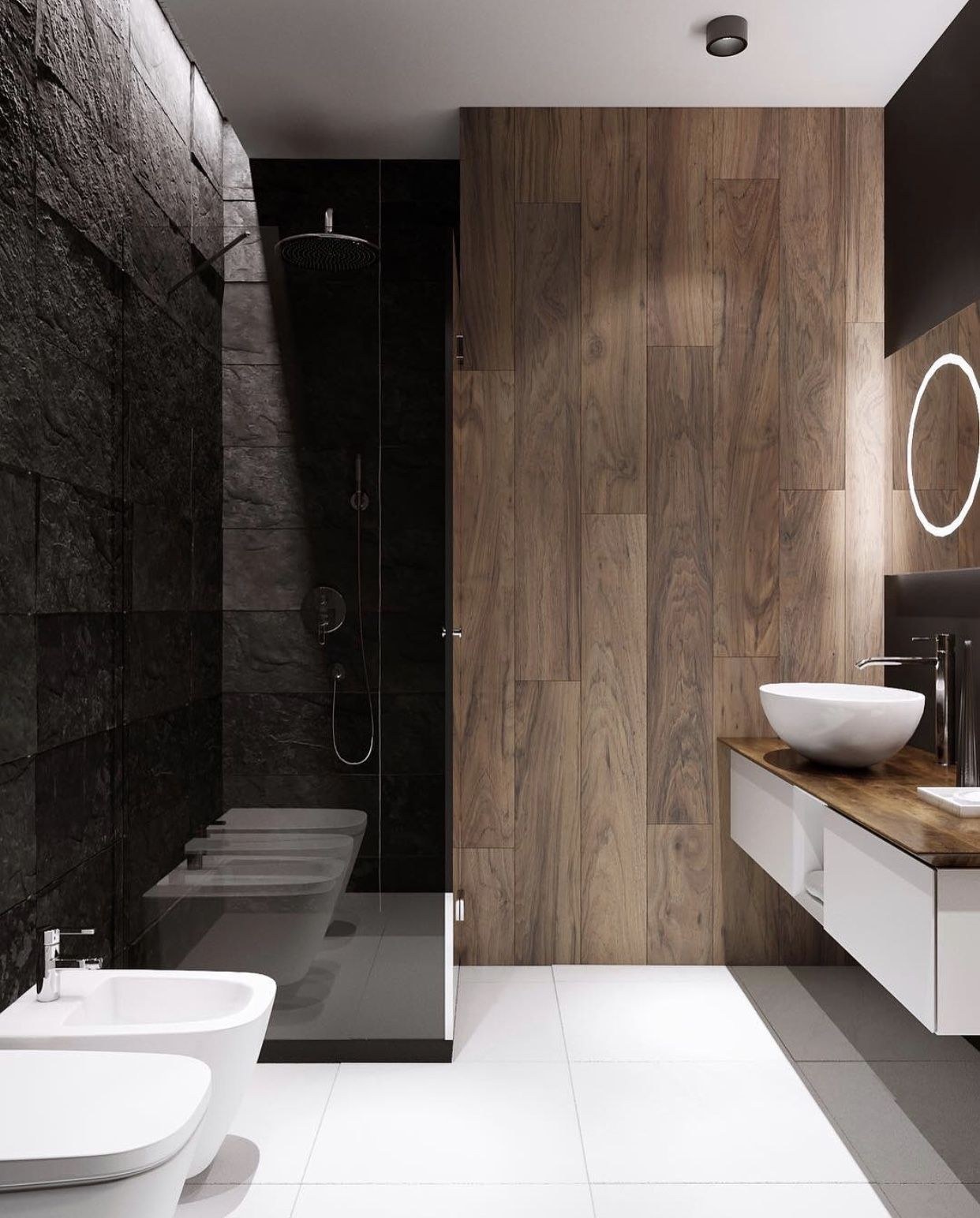 Сочетание дерева и плитки в ванной 150 фотографий