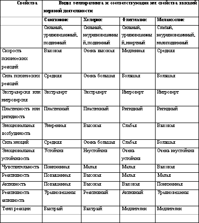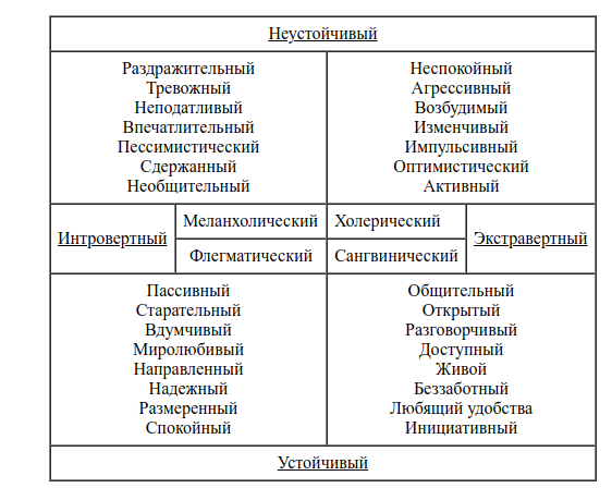 Сочетания типов темперамента