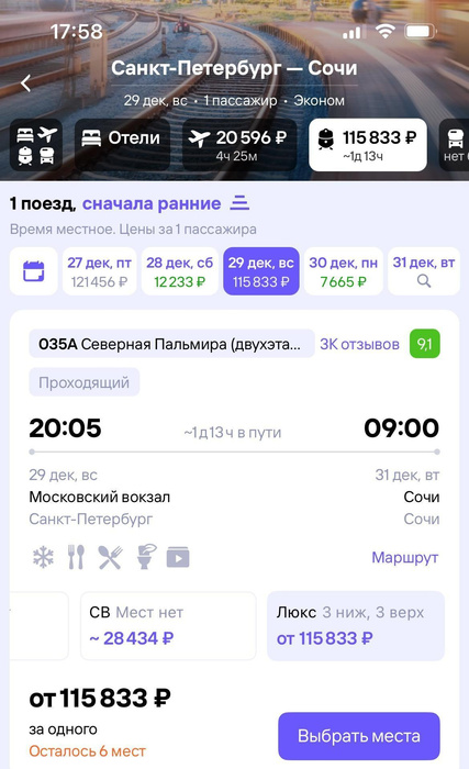 Сочи питер поезд билеты