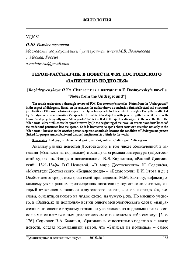«Подпольный человек» в повести Ф . М . Достоевского «Записки . . .