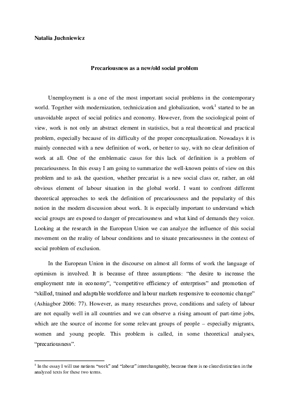 Social Problem, Essay Sample/Example