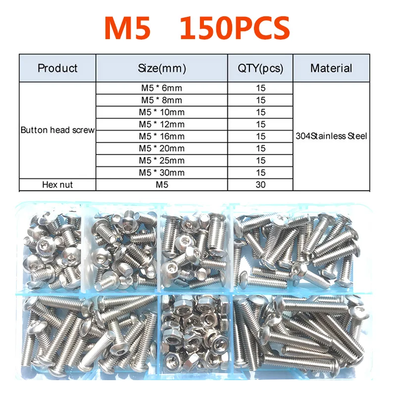 «Socket Head Cap Screw M2 M3 M4M5 M6 304 Round Stainless Steel and Hex Nut Socket Button Head Allen Bolt Screw Assortment Kit Set» по лучшей цене на рынке! Всего за 6$ (570рублей)