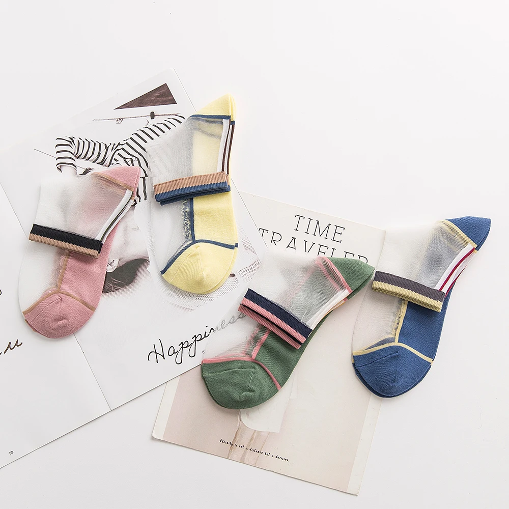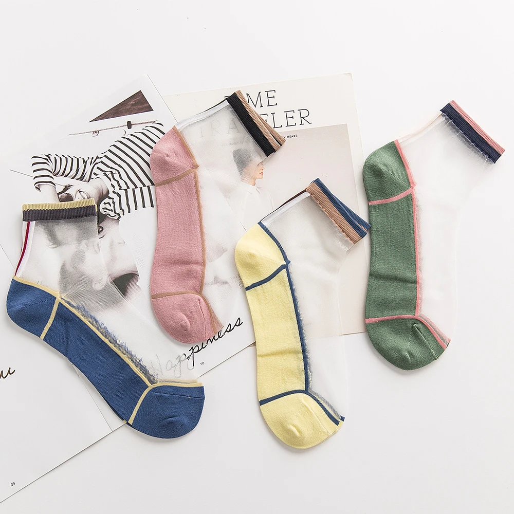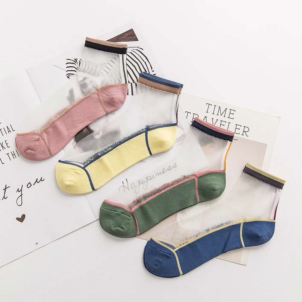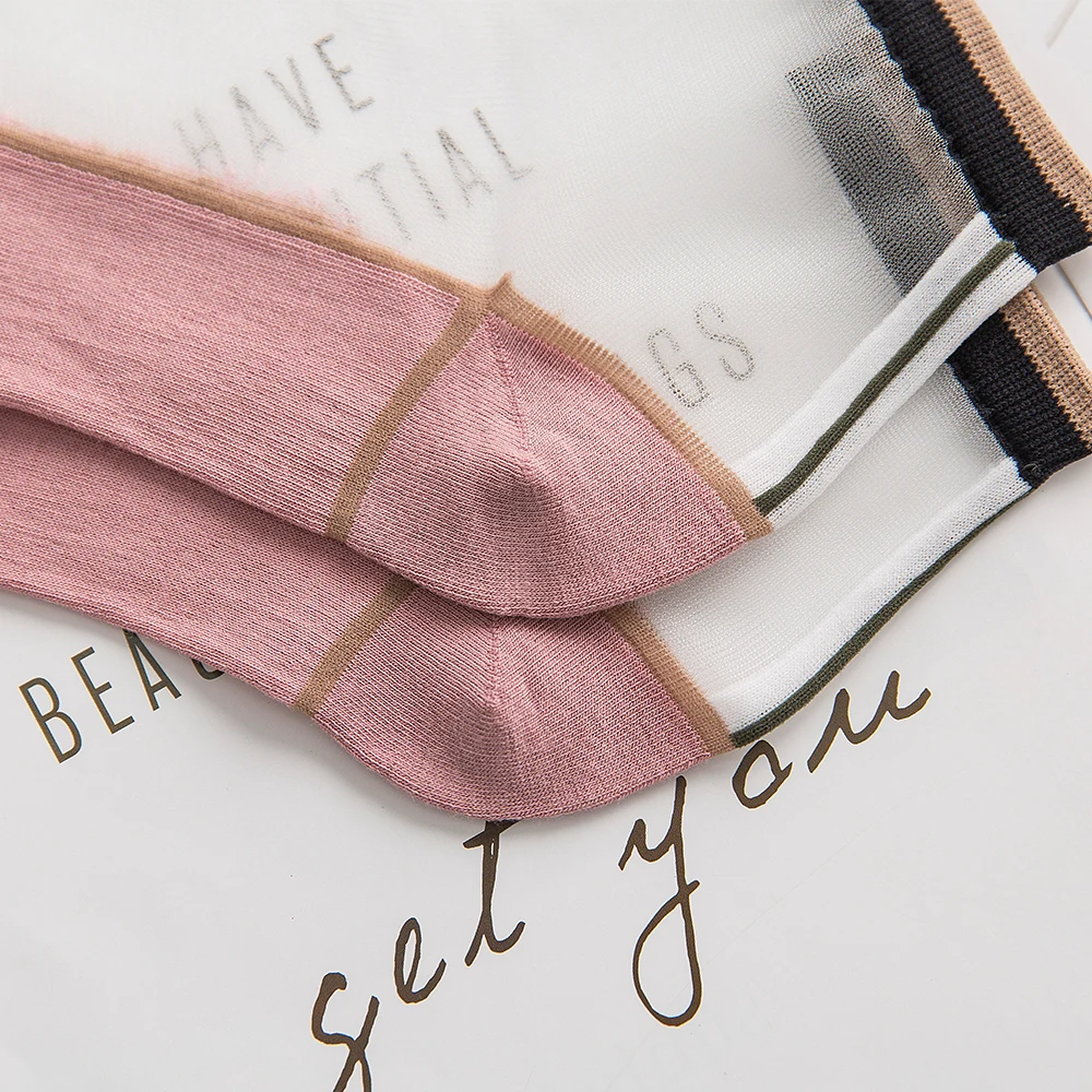 "Socks Women's Spring And Summer Medium And Short Tube Single Color Pattern Thin Comfortable Transparent Stockings Cotton Bottom" * Buy Now Just For 2$