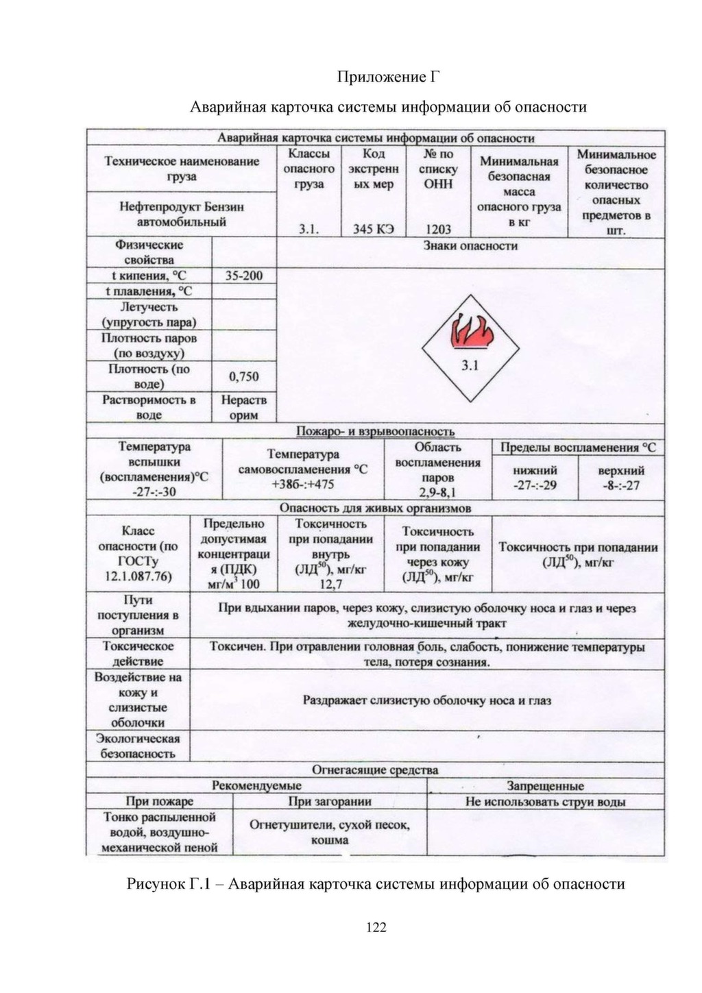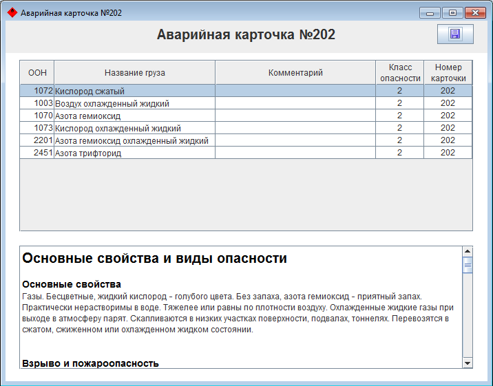 Содержание аварийной карточки