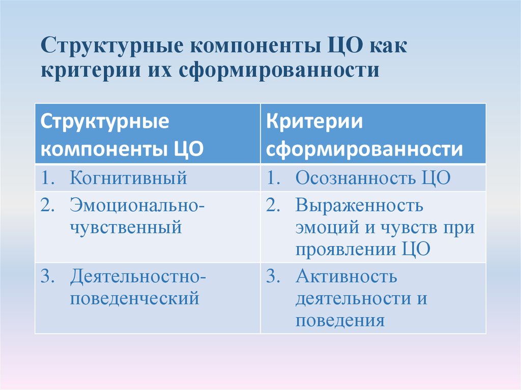 Содержание когнитивного компонента