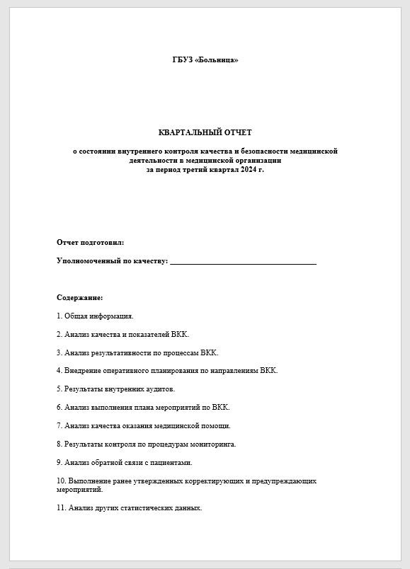 Содержание отчета по качеству