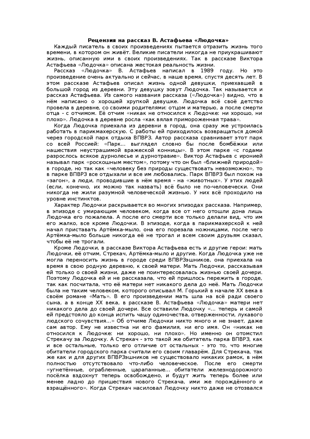 Содержание рассказа людочка
