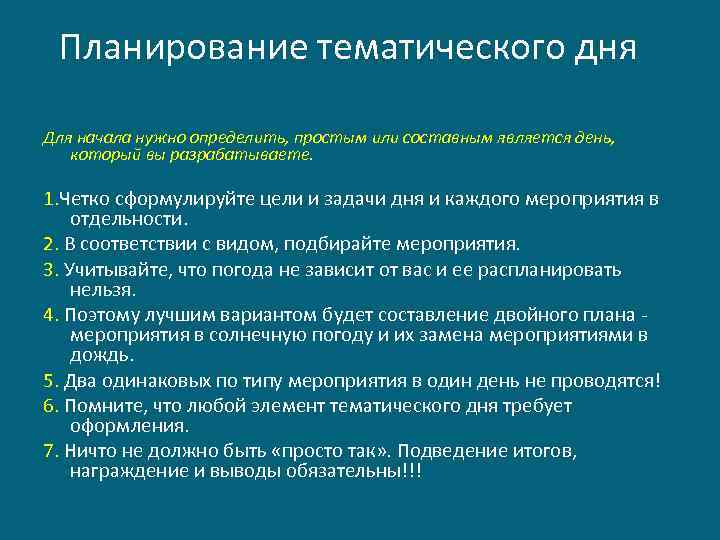 Содержание тематического дня