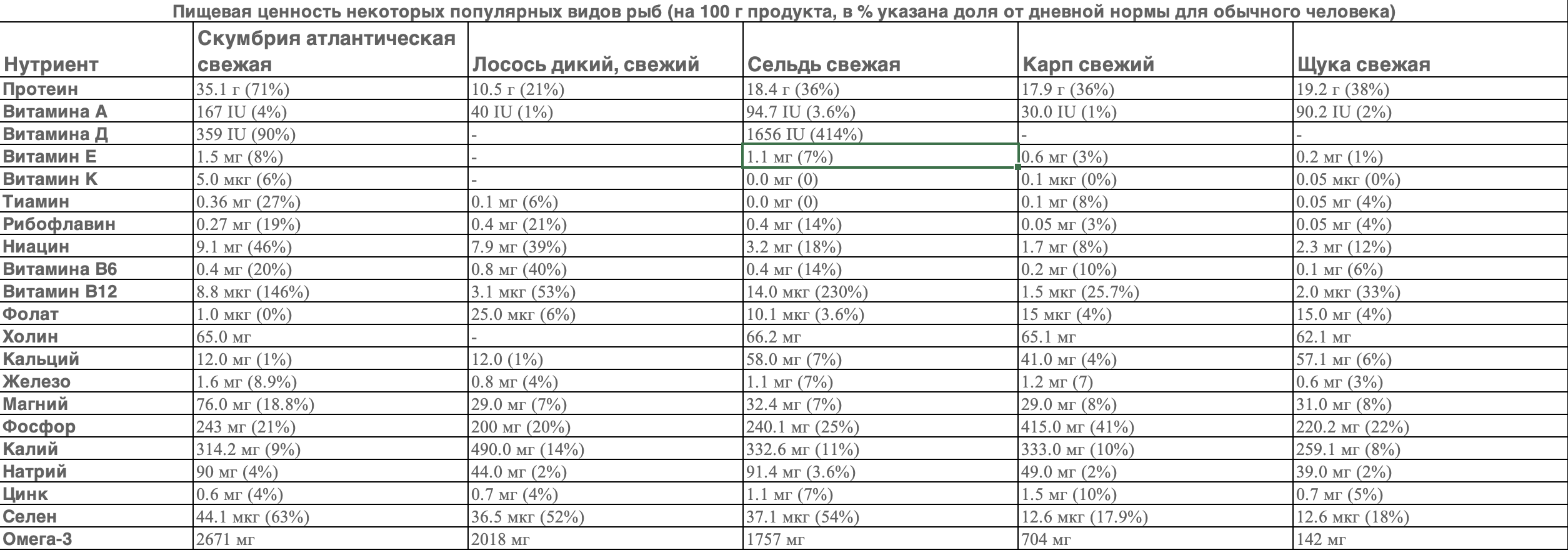 Содержание железа в рыбе