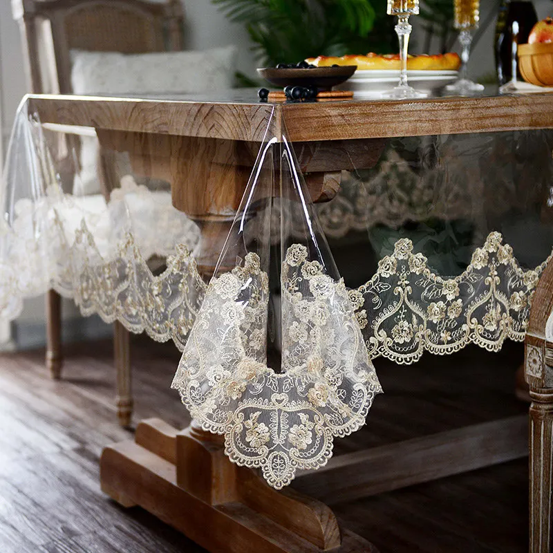 "Soft Glass Transparent Dining Rectangular Tablecloth PVC Waterproof Birthday Coffee Table Cover Party Embroidery Lace Decoration" * Buy Now With Free Shipping Just For $76