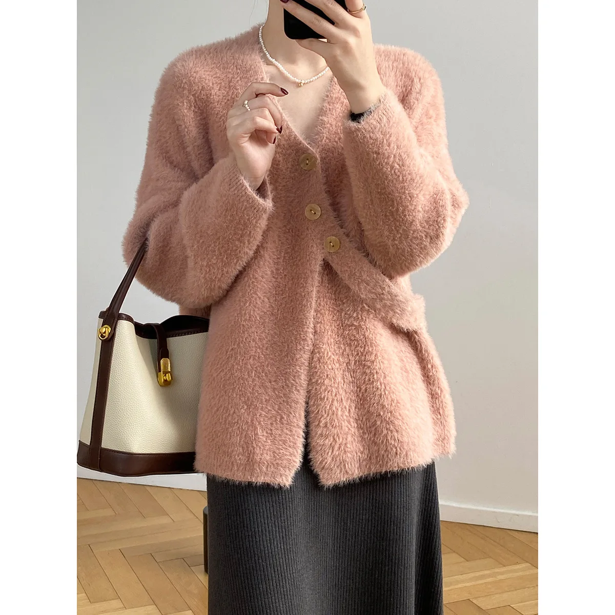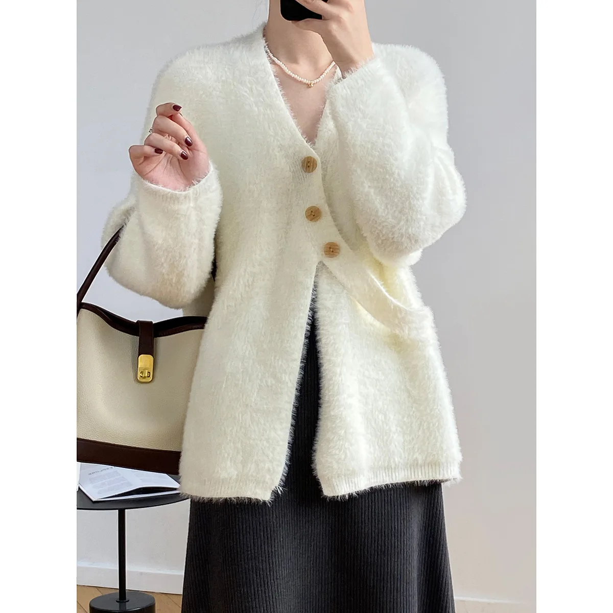 «Soft Glutinous Imitation Mink Fur V-Neck Sweater Cardigan Female Winter Gentle Oblique Buckle Lacing Knitted Sweater Jacket» по лучшей цене на рынке! Всего за 37$ (3515рублей)