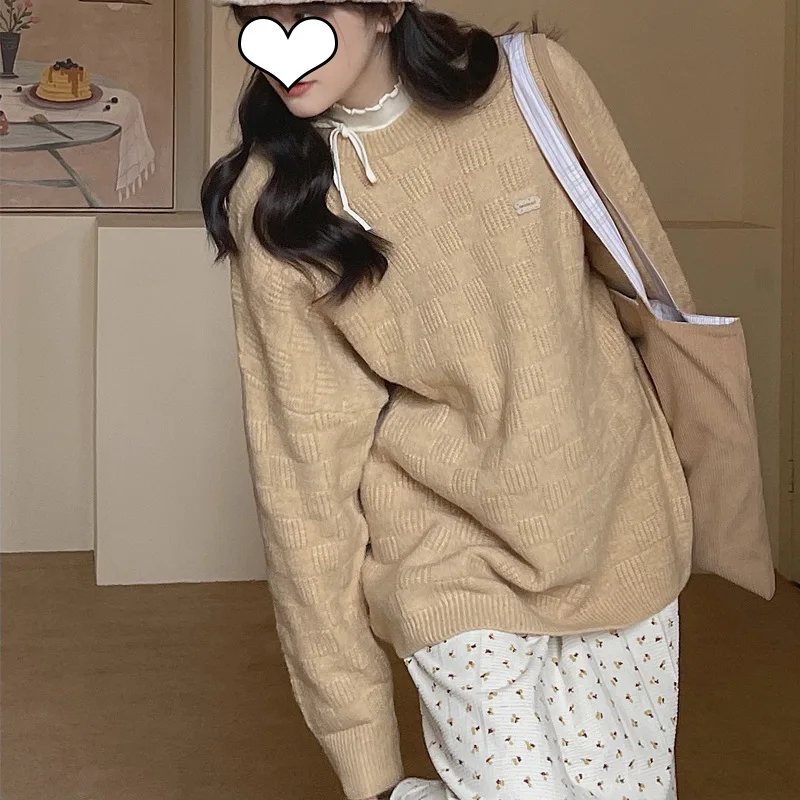 «Soft Plaid Knitted Sweater for Women Loose Korean Style 2022 Autumn and Winter Lazy Style round Neck Pullover Top Women» по лучшей цене на рынке! Всего за 26$ (2470рублей)