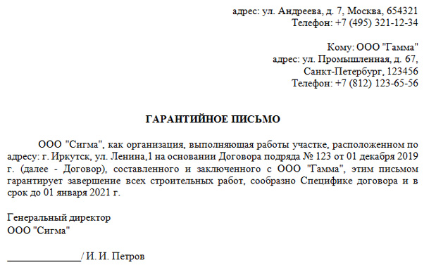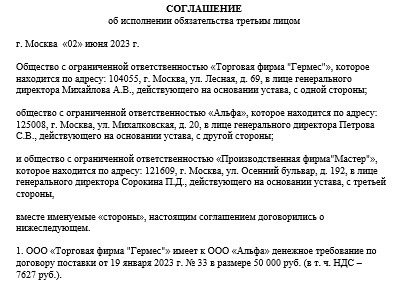 Соглашение об исполнении условий договора