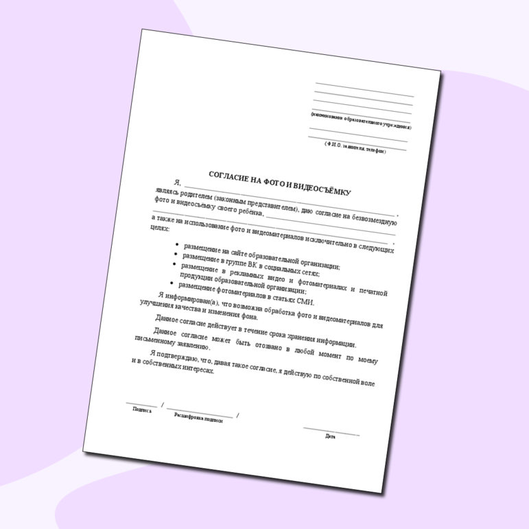 Согласие На Фото И Видео Ребенка