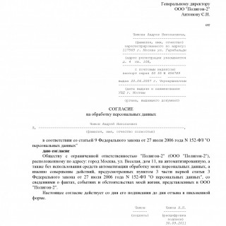 Новое согласие на обработку и распространение персональных . . .
