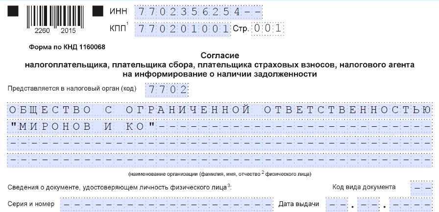 Согласие форма 1160068
