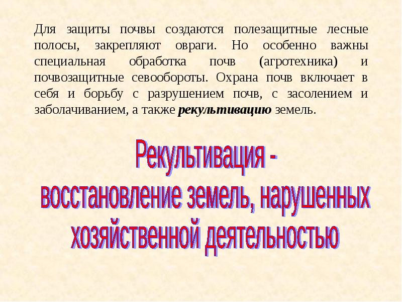 Сохранение и восстановления почв